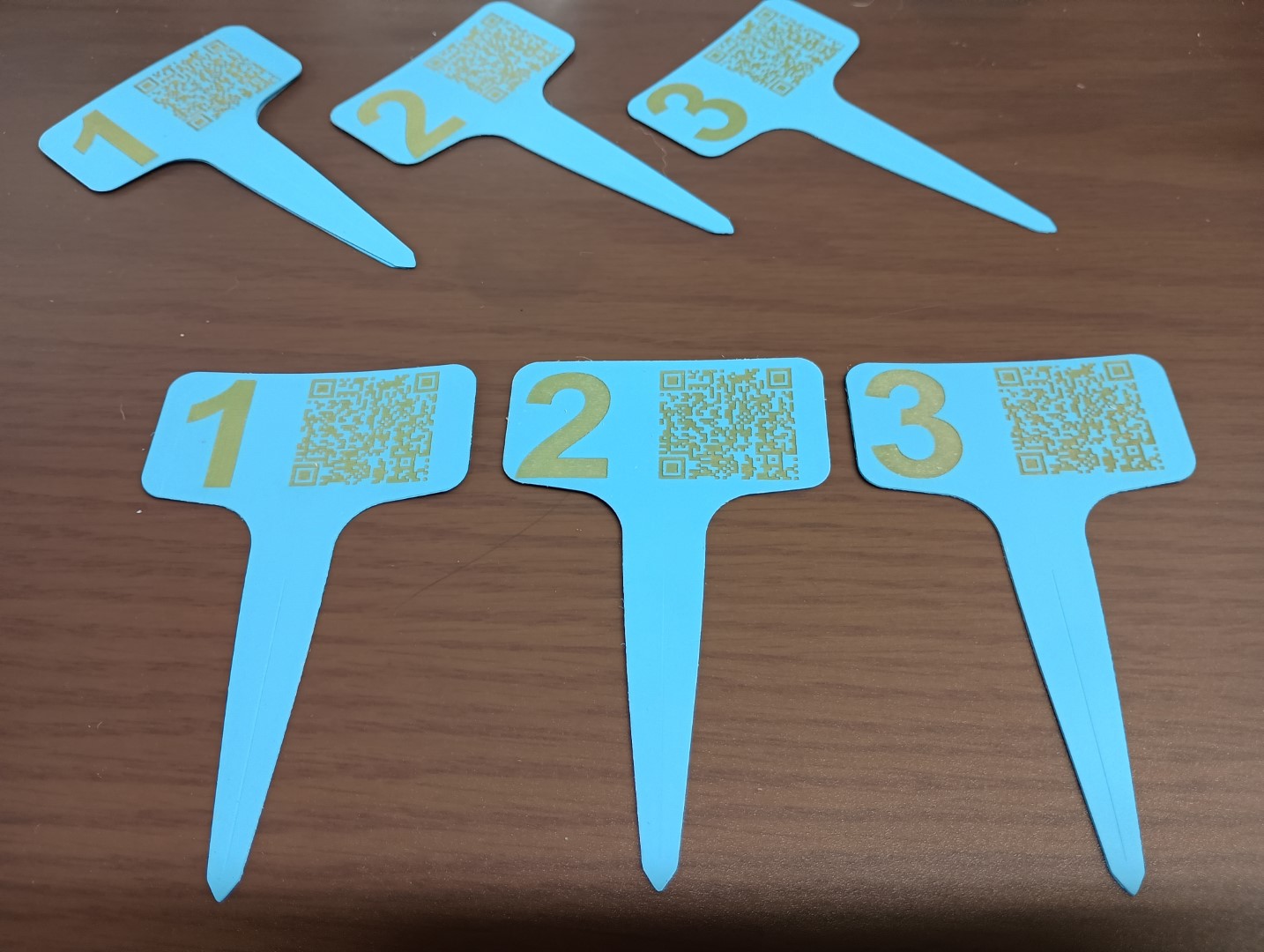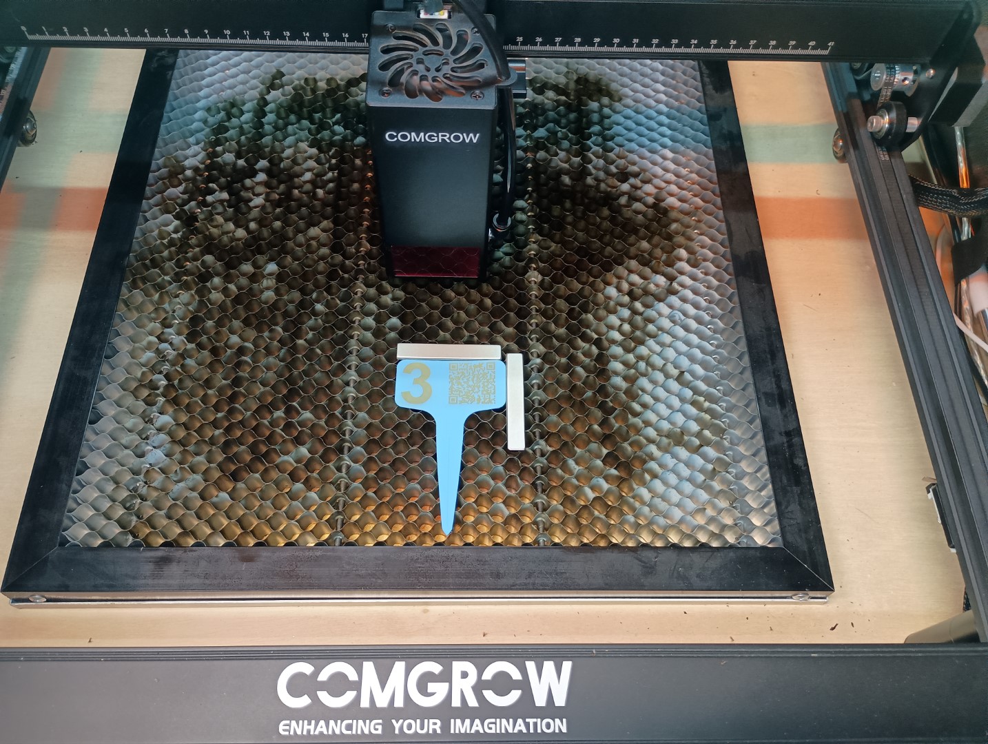 Another idea I had was to just engrave a number on them, and then we could reference the number in our garden planner spreadsheet, where we track what we plant. I store the spreadsheet on Onedrive, so it can be accessed over the Internet. I decided to also put a QR code on the tags, linking to the spreadsheet link. That way, if we are in the garden and want to see what a particular plant is, we can just scan the tag with our phone, and it will bring up the spreadsheet.