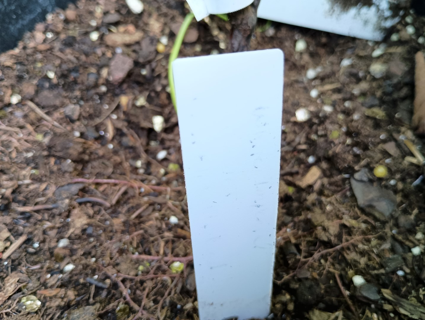 I had the idea of engraving on the cheap plastic tags we use for seed starting. The problem is that diode lasers do not cut or engrave on white plastic. It has to do with the wavelength of the laser beam. They do, however, engrave on darker colored plastic. Blue, for instance, works particularly well. So I ordered some blue plant tags.