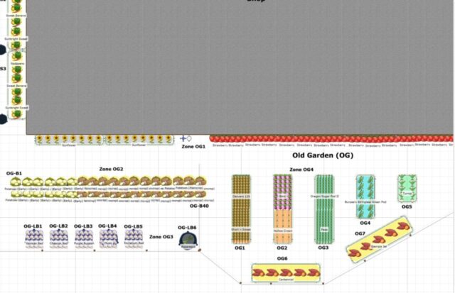 We have had an issue with starting way to many seeds and then struggling to find places to plant them. This has caused issues with seedlings staying in pots for too long and beds being too crowded. In the process of drawing this out we were able to not just look at what beds we had but we were able to plan what beds we needed. Now that we know the layout we know what to plant, how many beds we need to get ready, and how many of each plant to start. We were also able to look at the watering zones. Learning that the fertilization needs of things differs is huge. We could setup things with like needs all in a zone and now Bill can setup his fertilizing schedule for that zone. It was overwhelming but I’m so glad we finally just did it.