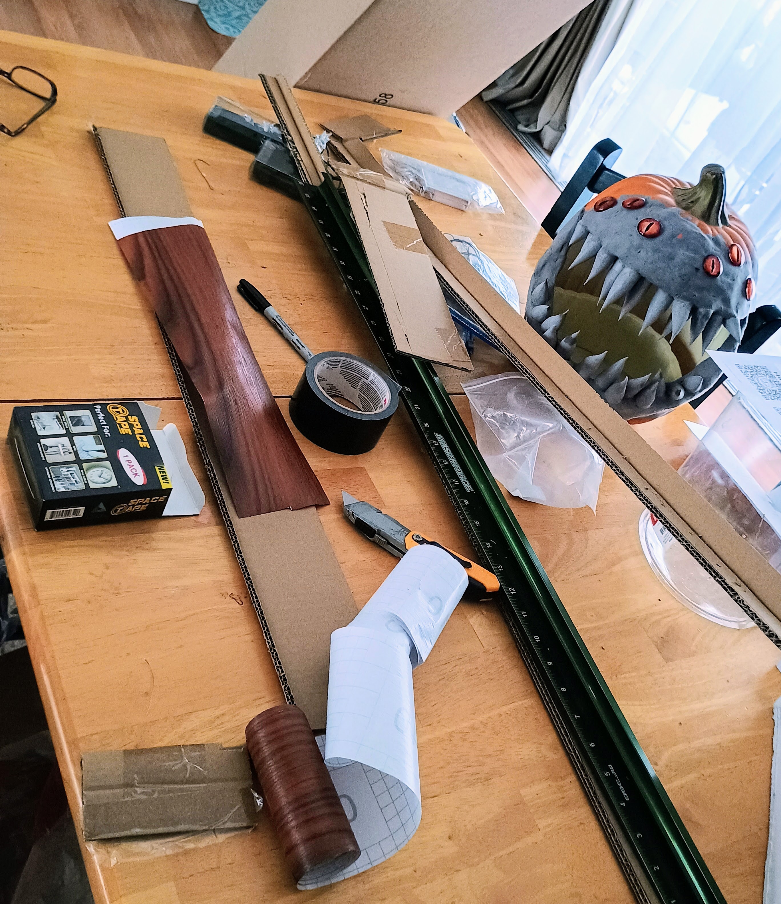 I then cut pieces and taped them up to see if we liked how it looked, we did. Time passed, tape failed, things were looking not great.