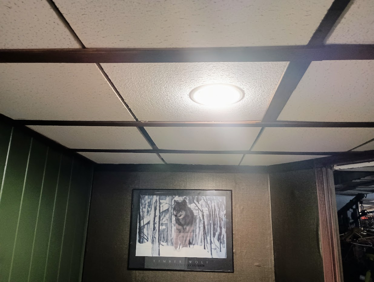 If, like me, you grew up in a home where painting wood was a crime against humanity then you would understand the the decision made to paint the walls down there was not done lightly. It was made when we thought we needed to sell the house and apparently the rest of the world sees wood and brown as old. Grey was king at the time so I painted the basement grey. I have regretted this. Such is life. The ceiling they installed in the basement was unique. They used thin planks of redwood and created a grid, and then more thin planks of redwood with nails on the edges for spacing. These were laid into the grid to form a wood ceiling with 1/4 gaps between the boards. I’m not 100% sure why the gap, maybe to break up the heavy? What I do know is that one day while working in the basement a very large caterpillar thing dropped onto the counter by my head. I’m not afraid of bugs but that was unsettling. I also have long hair and the thought of something dropping out of the ceiling into my hair made me want to put up a different ceiling. One without gaps, one where I did not have to hold my breath and run through the room covering my head. I bought the normal cheap acoustic ceiling tiles and spent a day putting them up. They did the job and initially I told myself I liked it because it brightened the room up and there was a lighter carpet on the floor so it all worked. I understand that I never addressed how the giant caterpillar thing got up there in the first place. My life is full of things that I prefer to never really think that hard about. I prefer to live content in the knowledge that they can no longer fall in my hair.